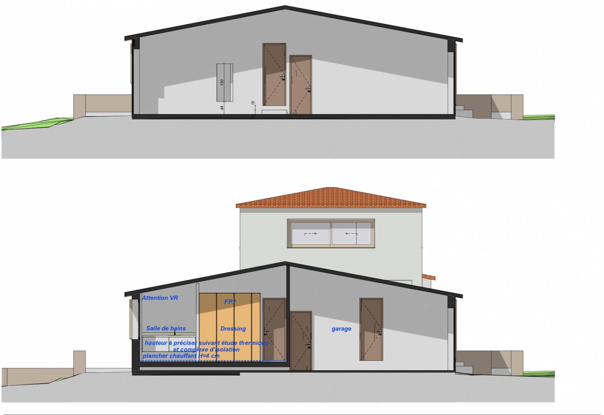réhabilitation et surélévation de villa par l’équipe d’architecte DPLG et d' architecte d’intérieur. Un garage et un appenti sont également existants, localisés au Nord-Est de l’emprise foncière et exploités dans l’usage garage de voiture et une partie