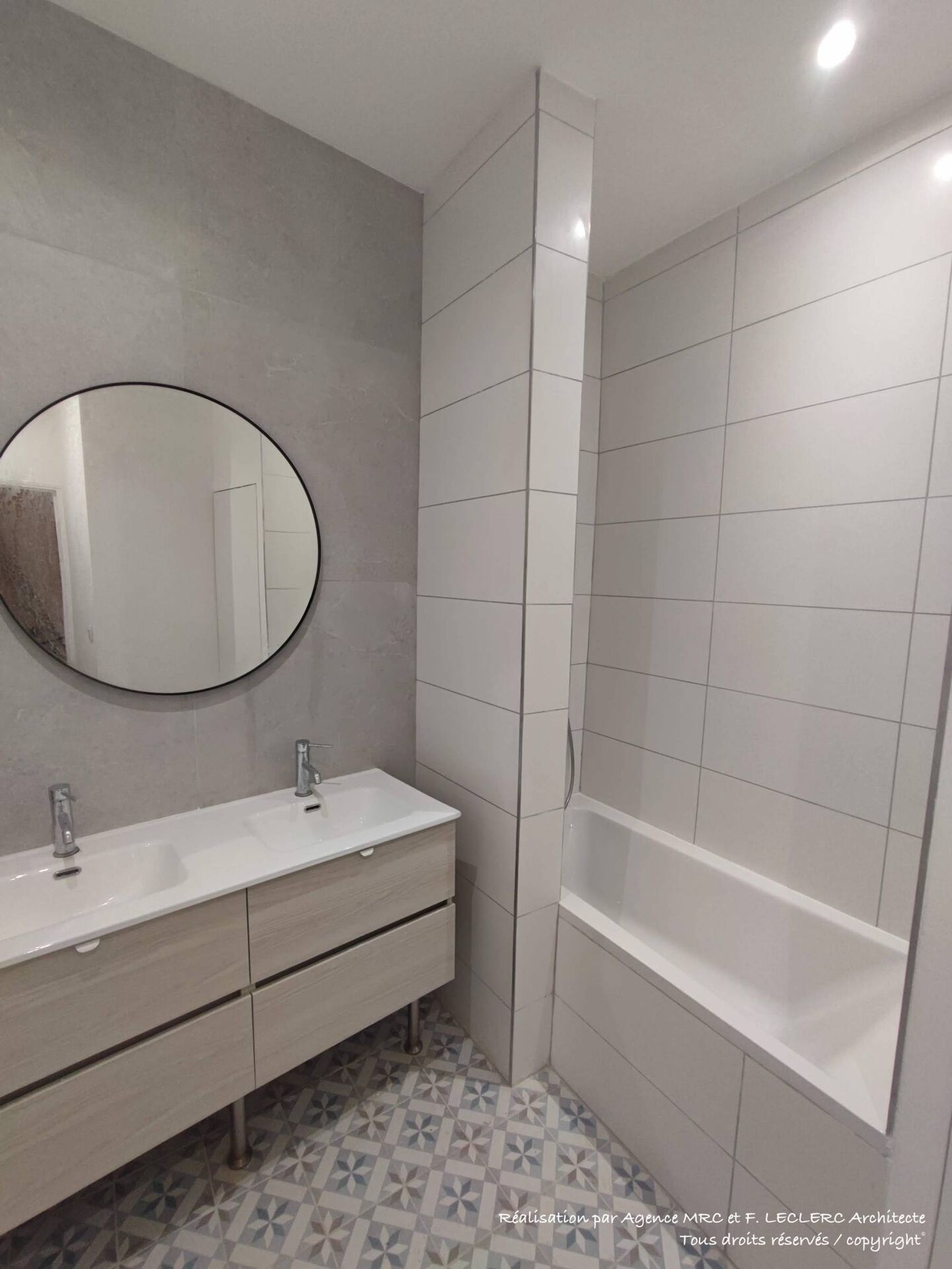 - Intégration de 2 vasques avec une baignoire et des niches.