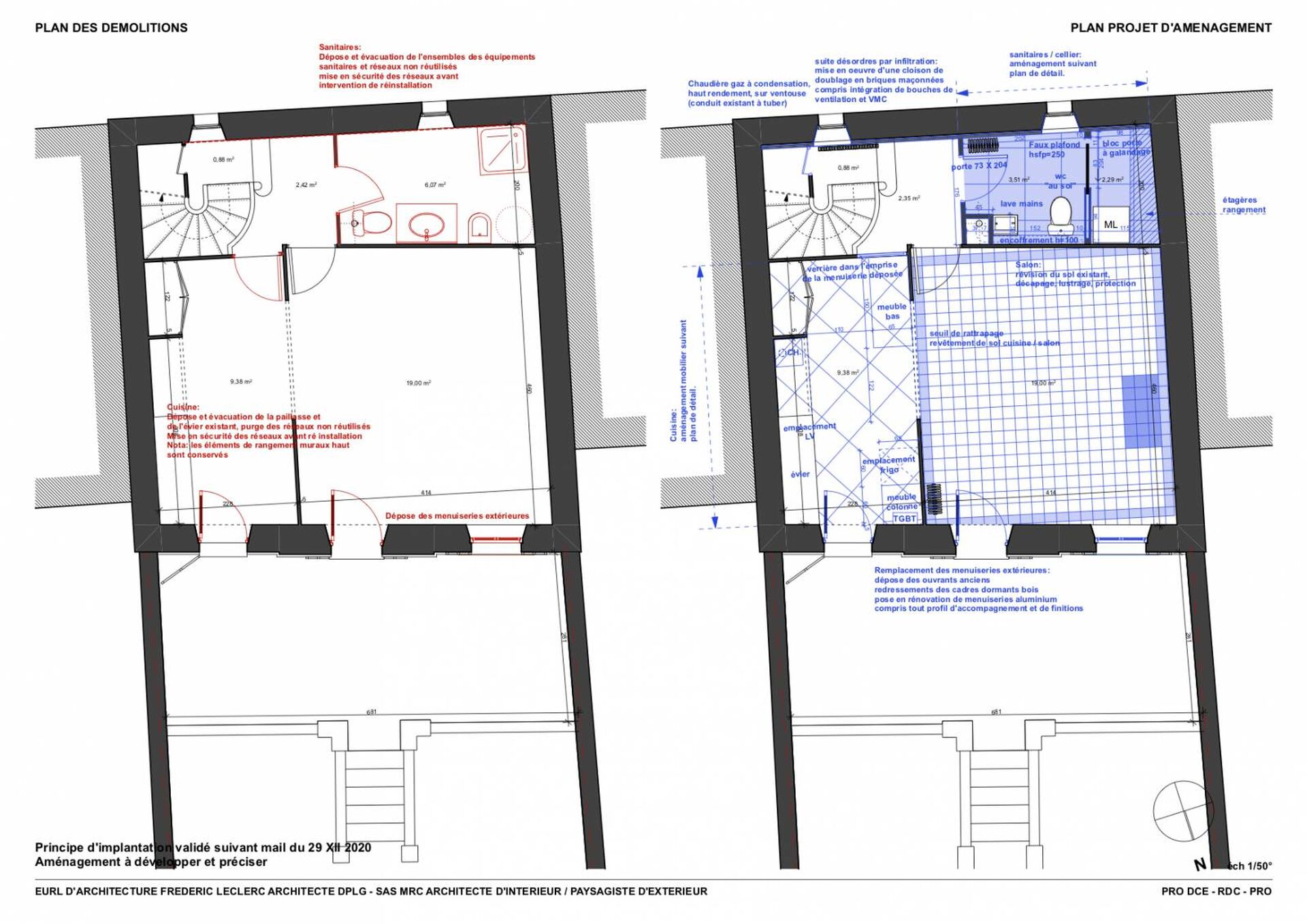- Menuiseries : changement des 6 fenêtres, porte-fenêtre et fenêtrons par des menuiseries en double vitrage, en bois + restaurer les appuis de fenêtres cassés en pierre. Suivant déclaration de travaux "DP" d'architecte DPLG (mission architecture DPC / DPD)