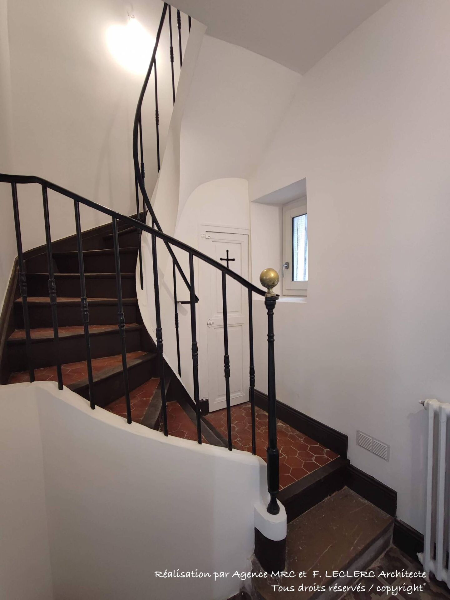 - Remplacement de la porte d’accès au palier par une verrière à mi hauteur