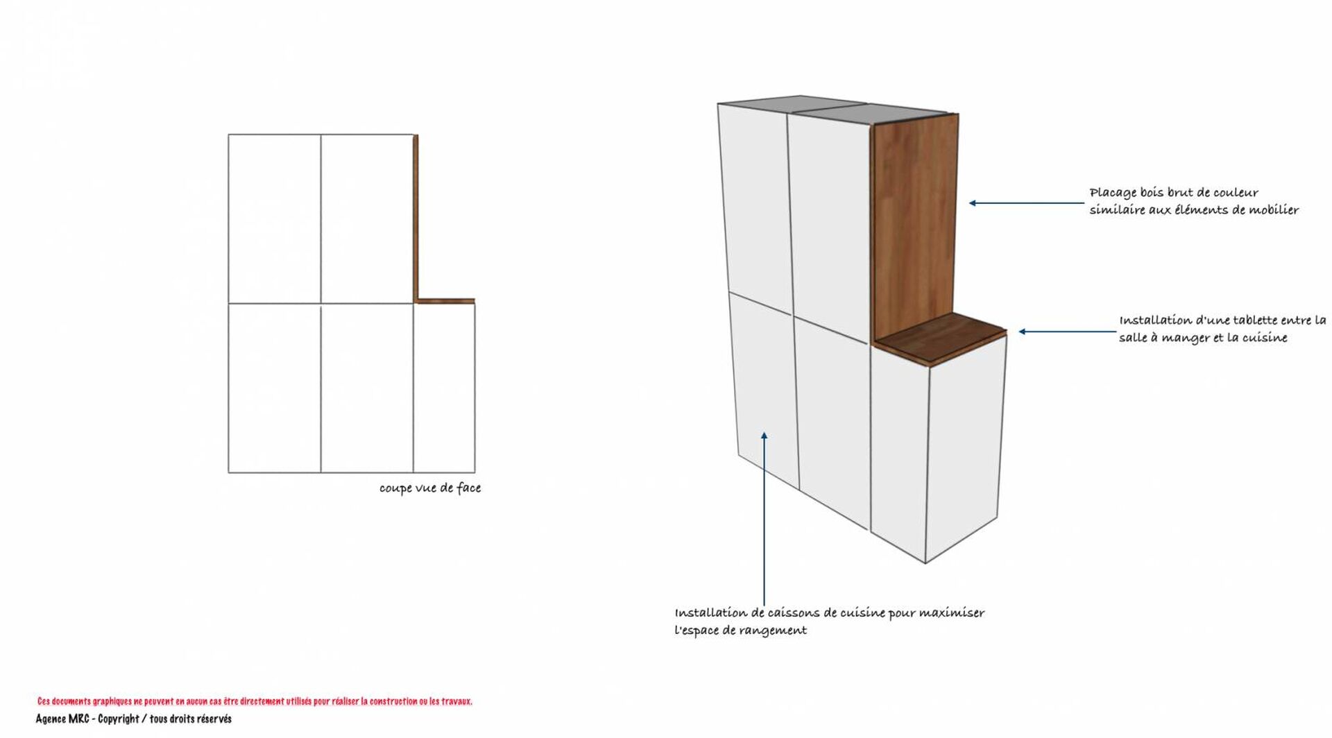 - Aménagement meuble multifonctionnel dans la salle à manger : Un meuble multifonctionnel est aménagé dans la salle à manger à Aix-la-Duranne. Ce meuble peut être un buffet en bois ou un élément intégrant des caissons de cuisine et des façades pour créer une continuité avec la cuisine. Ce choix, élaboré par un architecte d'intérieur, permet de maximiser le rangement tout en conservant une esthétique cohérente et élégante.