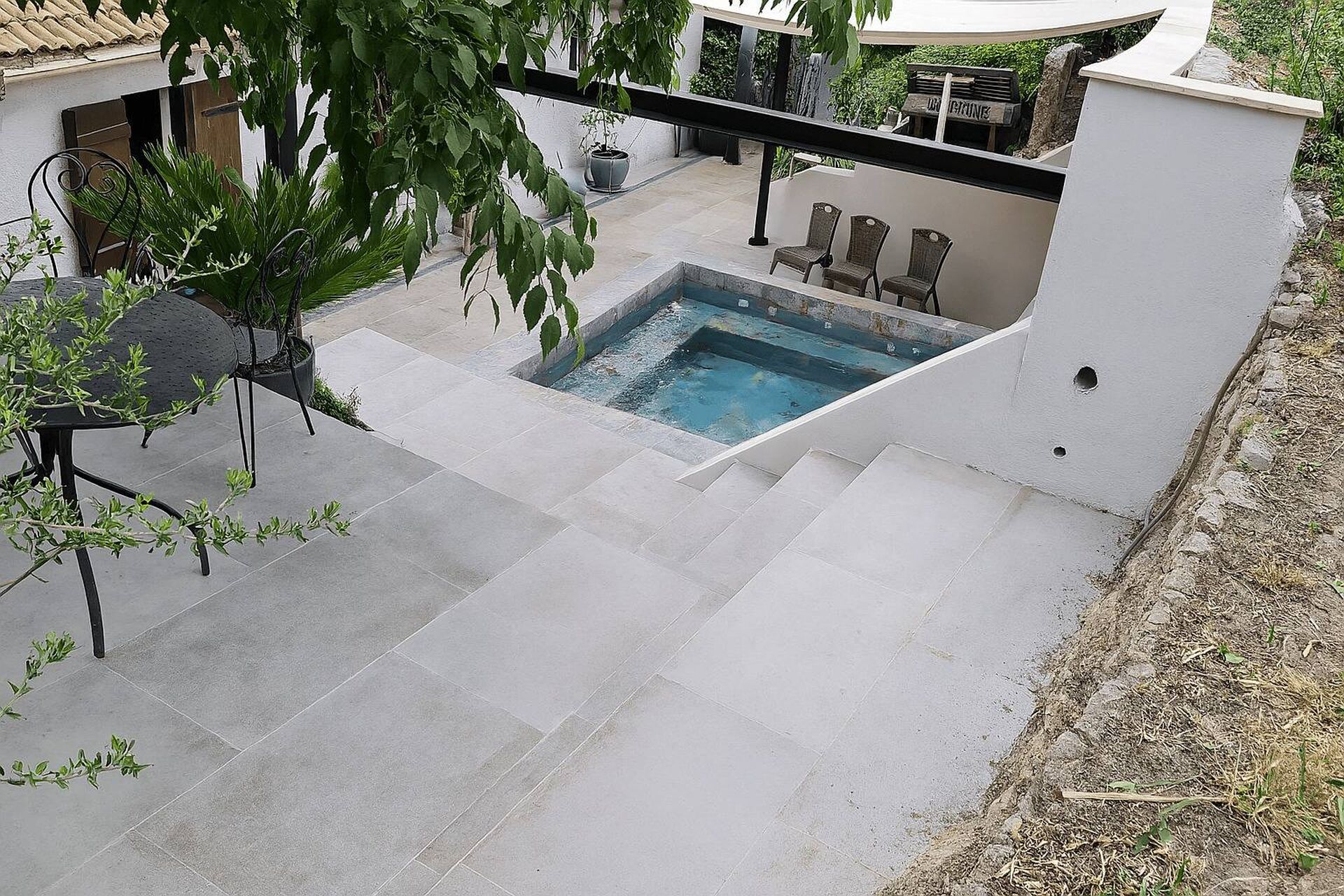 - La mini-piscine maçonnée est un bassin de petite surface avec une vraie fonction d’usage : détente, baignade à deux, rafraîchissement en été,