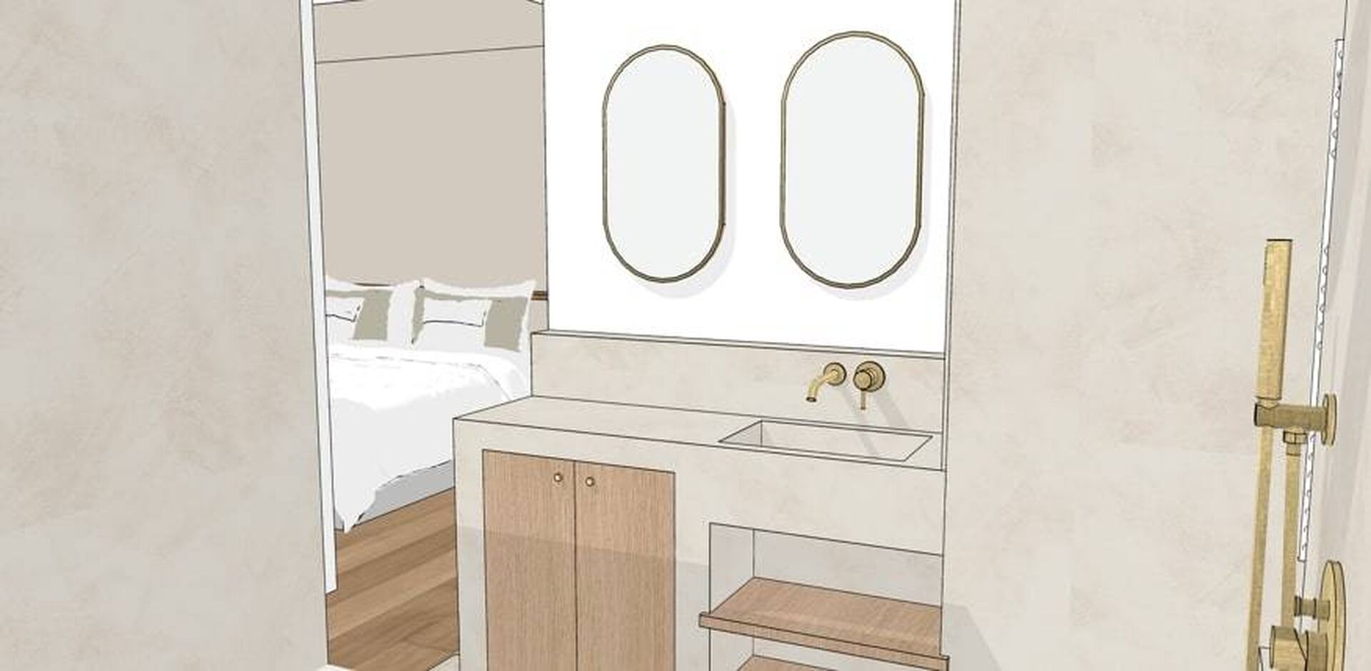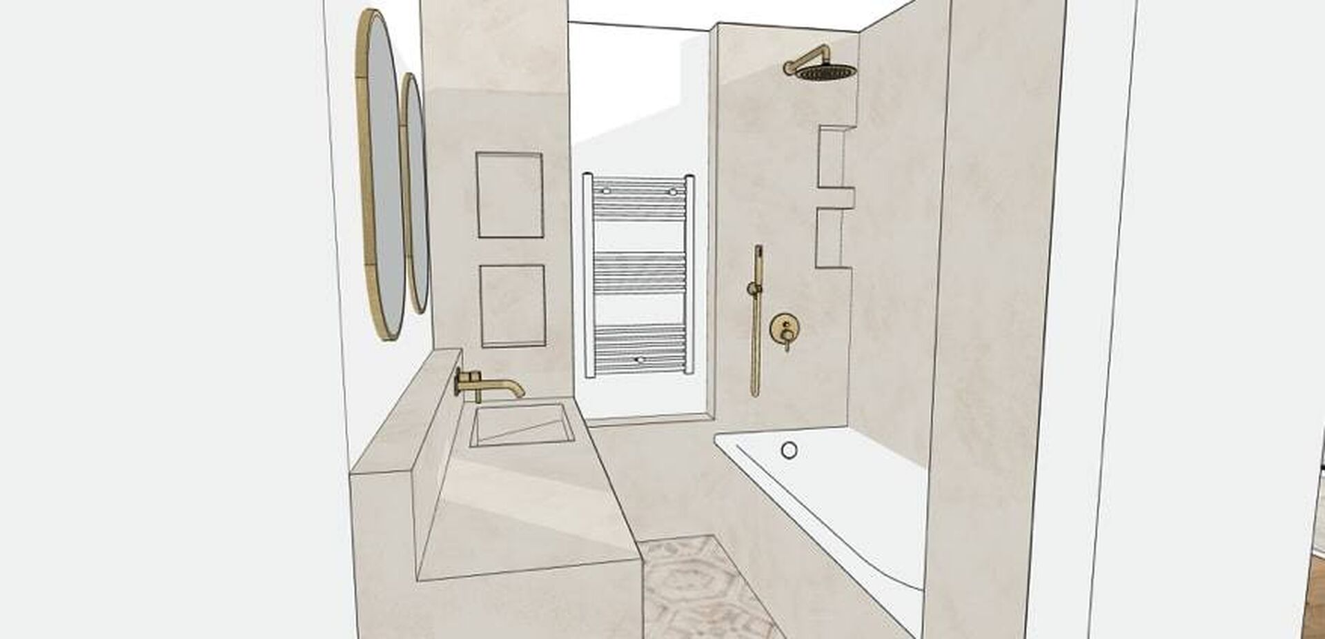 Salle de bain parentale et cuisine aménagé par un architecte d'intérieur en rénovation d'appartement situé à Marseille 13009, incluant des travaux généraux et la modification du cloisonnement